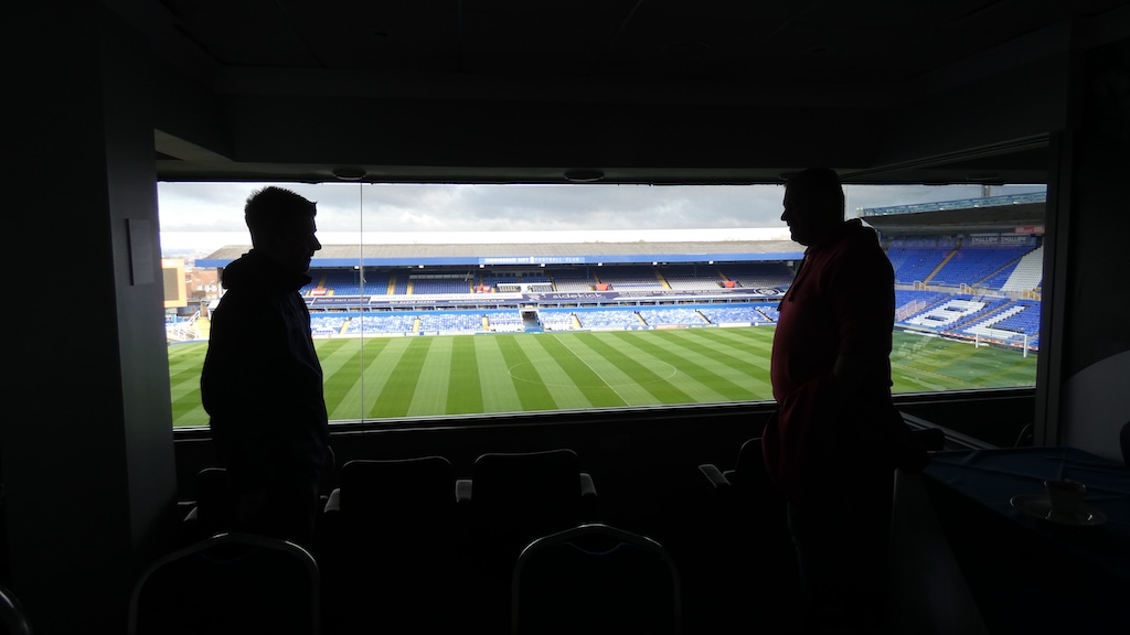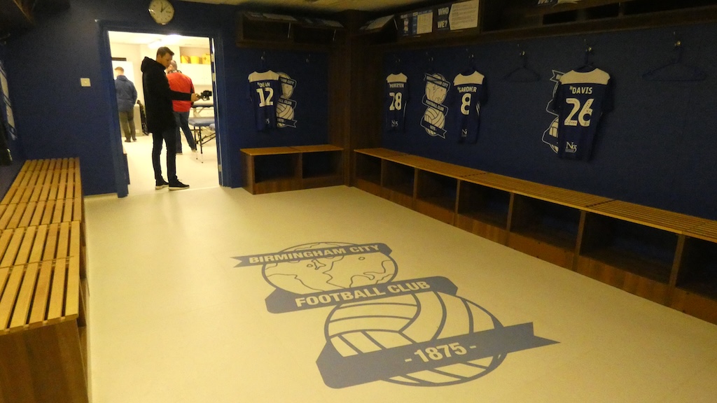 Als je een dag voor het stadionbezoek aan Birmingham City hard hebt staan juichen voor Aston Villa in de Second City Derby tegen hun stadsrivaal (4-2), voelt het toch een beetje vreemd om bij de Blues aan te kloppen voor een stadionbezoek. Toen Maikel Kieftenbeld een contract tekende bij de Blues werd er dan ook gezegd: “And now you have to hate Villa”. Het typeert de rivaliteit. Een tikkeltje schuldbewust meldden we ons bij de receptie, waar we mochten vragen naar Tom Bishop, die ons een rondleiding zou geven door het blauw ogende stadion van de plaatselijke City. Het werd uiteindelijk een andere collega, die ons heel enthousiast een uitgebreide rondleiding gaf, waardoor we toch steeds meer een prettig gevoel kregen.